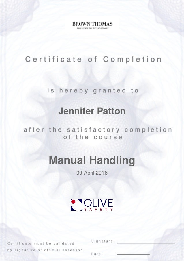 Certificate Manual Handling