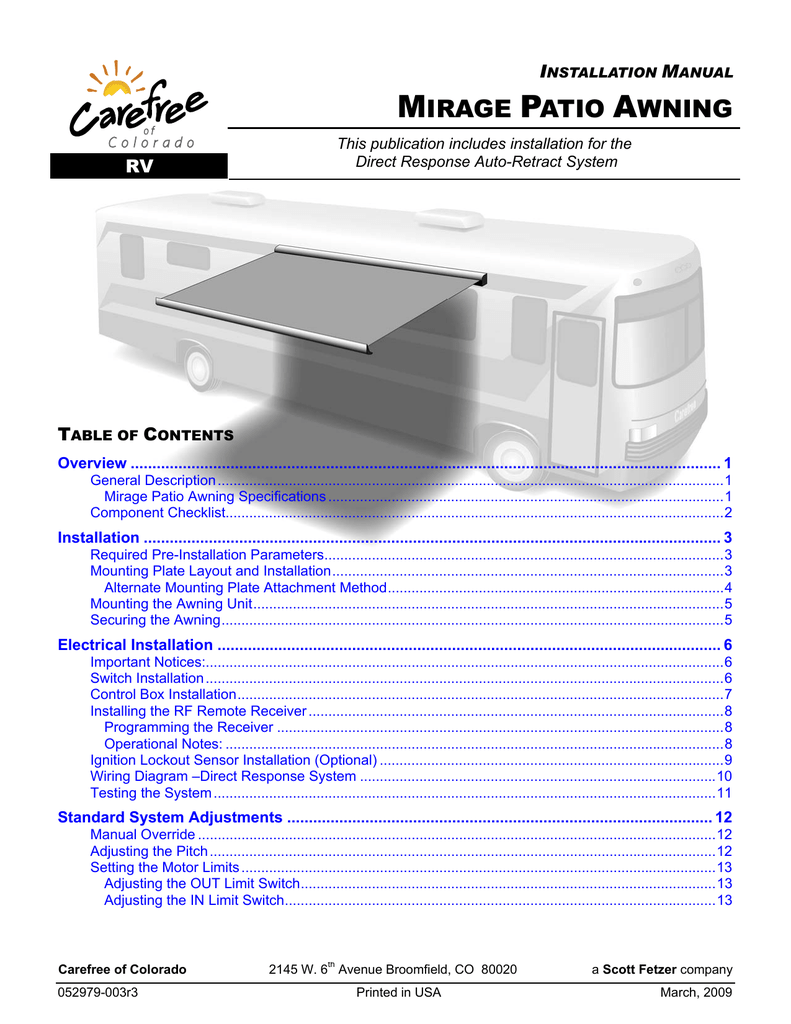 Https Www Carefreeofcolorado Com Documents Mirage Service Manual Pdf